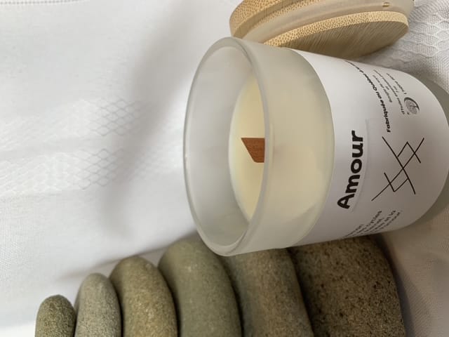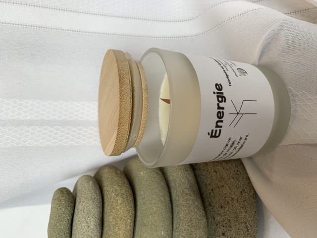 Fabriquée avec de la cire de soya naturelle, une mèche de bois pour créer une ambiance chaleureuse et une synergie d'huiles essentielles 100% pures fabriquées au Québec. 7 oz
