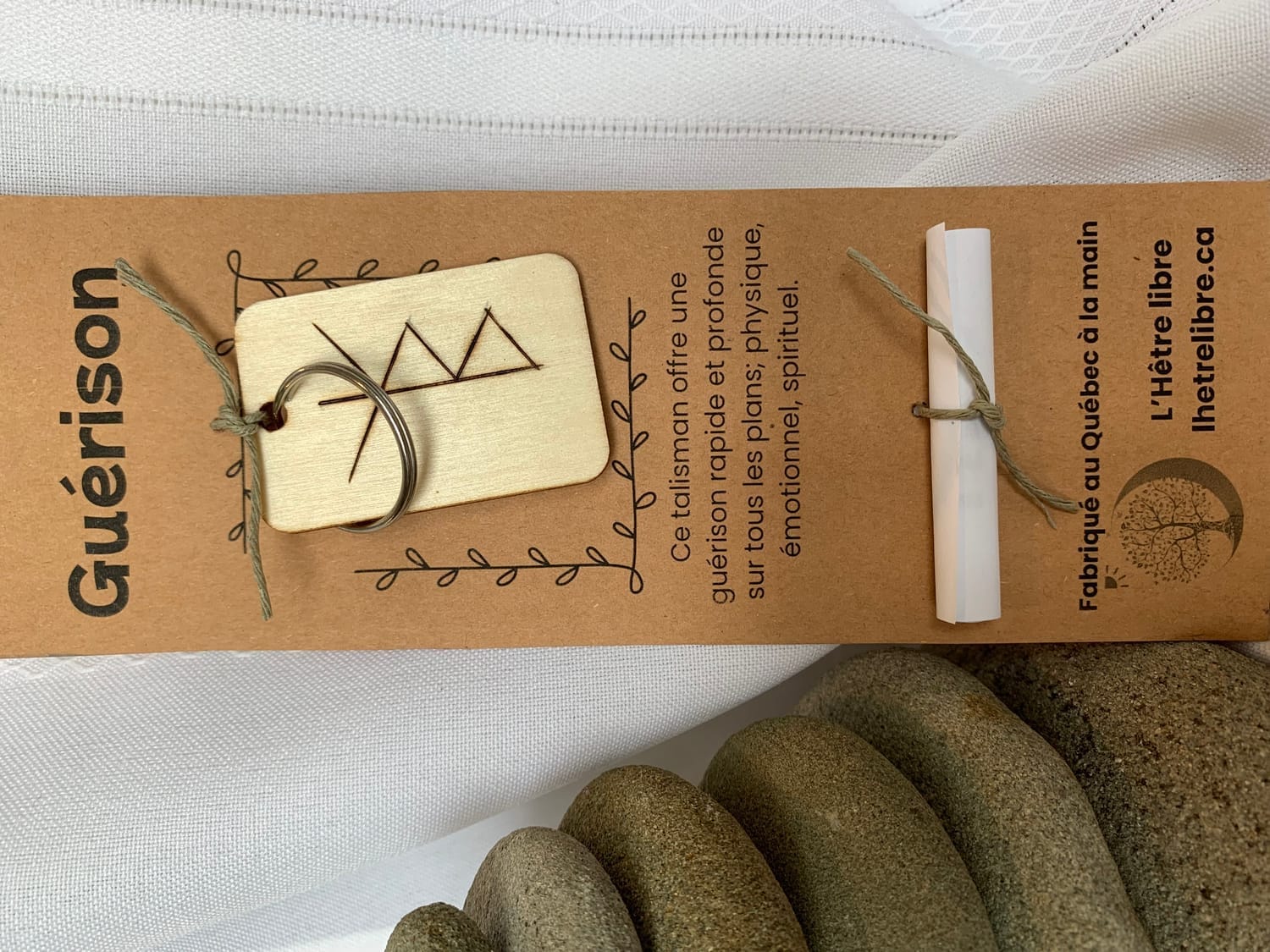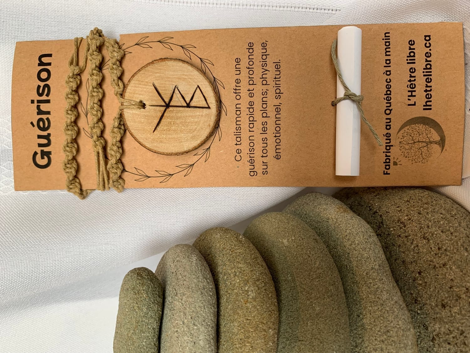de couleur naturelle est brodé à la main en spirale, de grandeur ajustable et runes burinées avec passion sur tranches de bois. À porter dans toutes les occasions ou suspendre dans un endroit idéal pour une guérison complète et rapide.